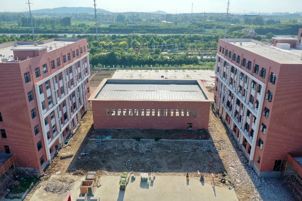 新校区以“实用为先、产教融合”为设计理念,核心建筑群涵盖教学楼、实训楼、报告厅、食堂及公寓楼,各区域功能明确又相互联动。