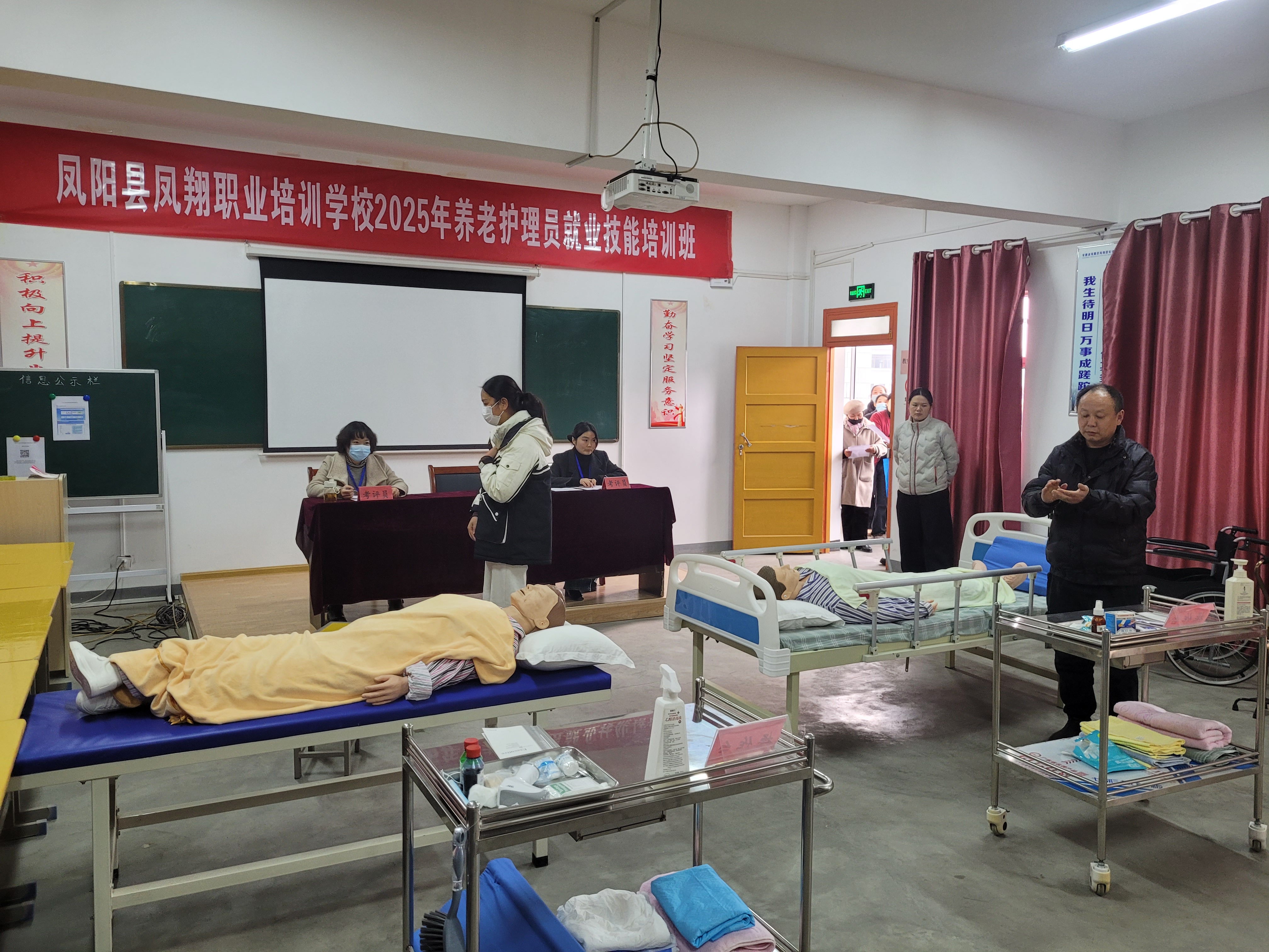 近日,在县人力资源和社会保障局的大力支持与全程监督指导下,凤翔职业培训学校2025年第一期养老护理员就业技能免费培训班顺利结业,全体参训学员统一参加结业考核,以“理论+实操”的双重检验,交出本次就业技能培训的满意答卷。
