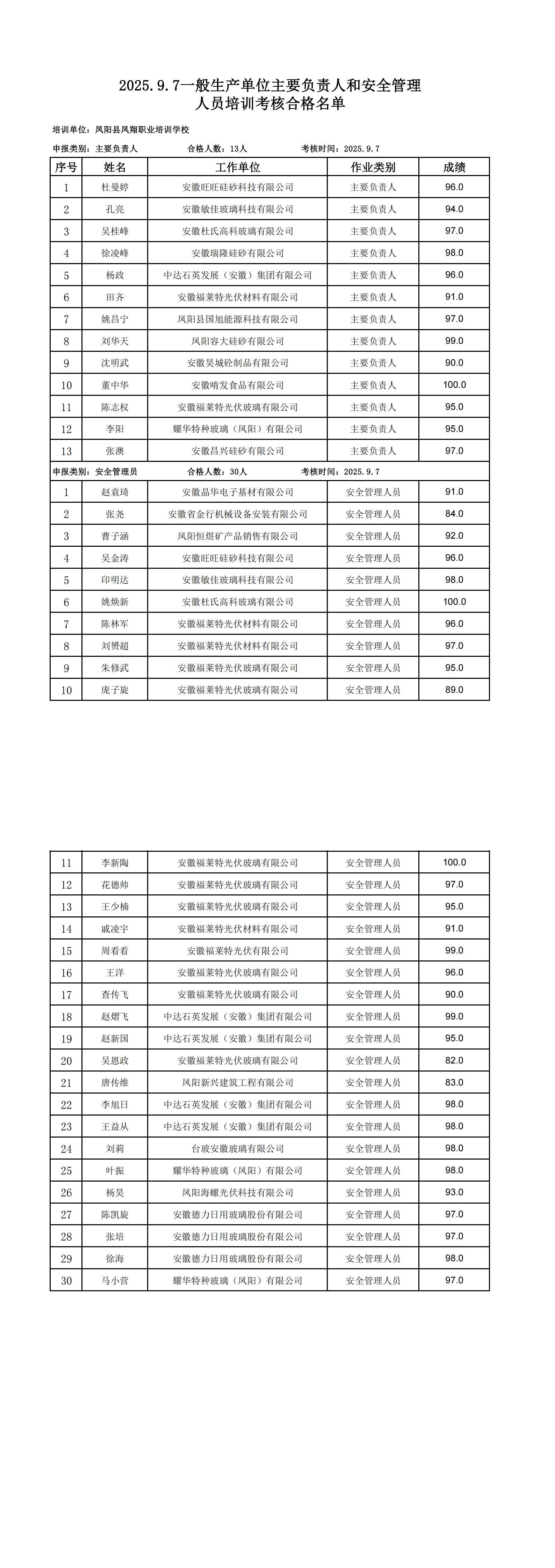 2025.9.7一般生产单位主要负责人和安全管理人员培训考核合格名单